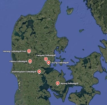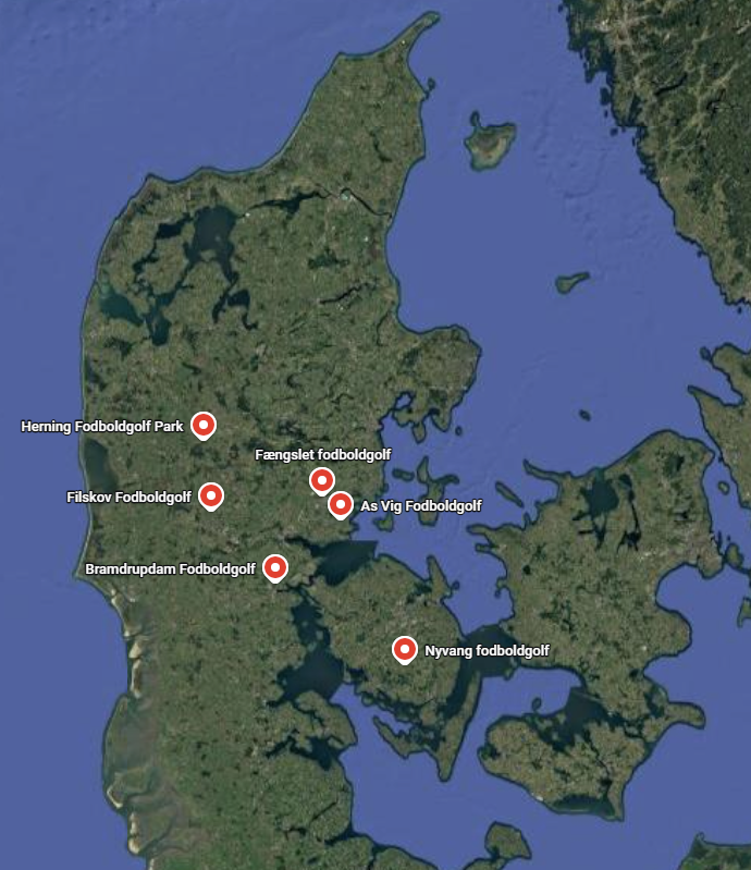 Her kan du se de danske fodboldgolf-baner som er medlem af Dansk Fodboldgolf Forening