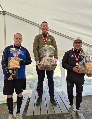 På de afgørende huller var det dog Nikolaj Krag fra Ørsted Outdoor Fodboldgolfklub, der trak fra og til sidst sikrede sig sejren – i øvrigt for andet år i træk i Gludsted.